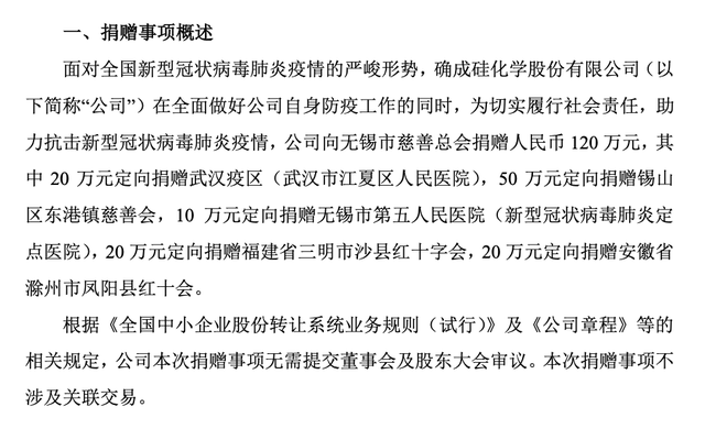 確成硅化表示,本次對(duì)外捐贈(zèng)資金來(lái)源于公司自有資金,對(duì)公司當(dāng)期及未來(lái)經(jīng)營(yíng)業(yè)績(jī)不構(gòu)成重大影響,亦不會(huì)損害公司和投資者的利益。公司將全力以赴做好防疫工作,保障員工安全、保障生產(chǎn)經(jīng)營(yíng)。